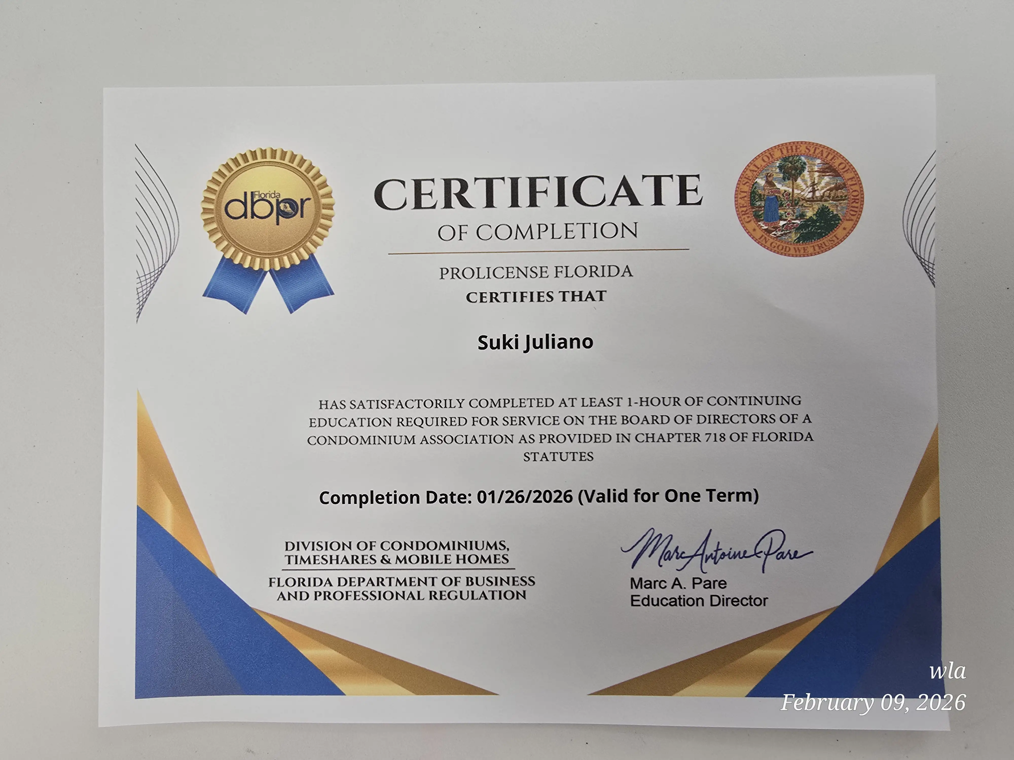Strathmore Villa South - Certificate of Amendment to Declaration 6.8.23